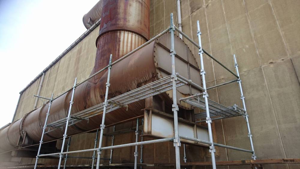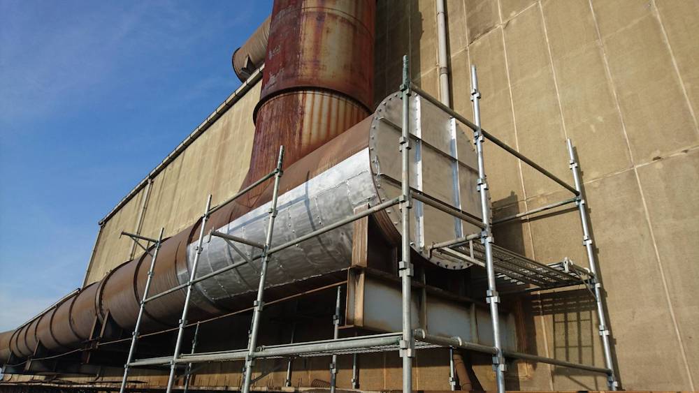 工場の大型ダクトの補強工事を行いました。